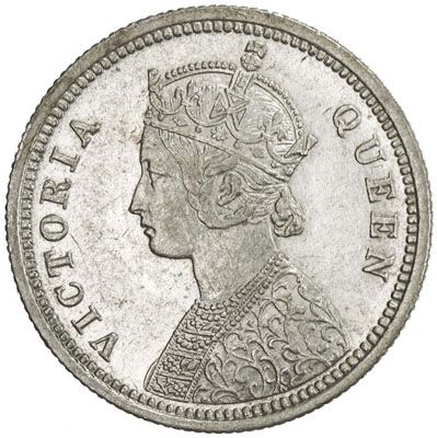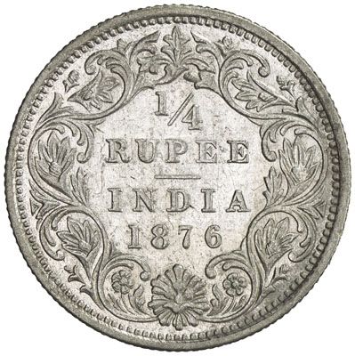BRITISH INDIA: Victoria, Queen, 1837-1876, AR 1/4 rupee, 1876(c)
