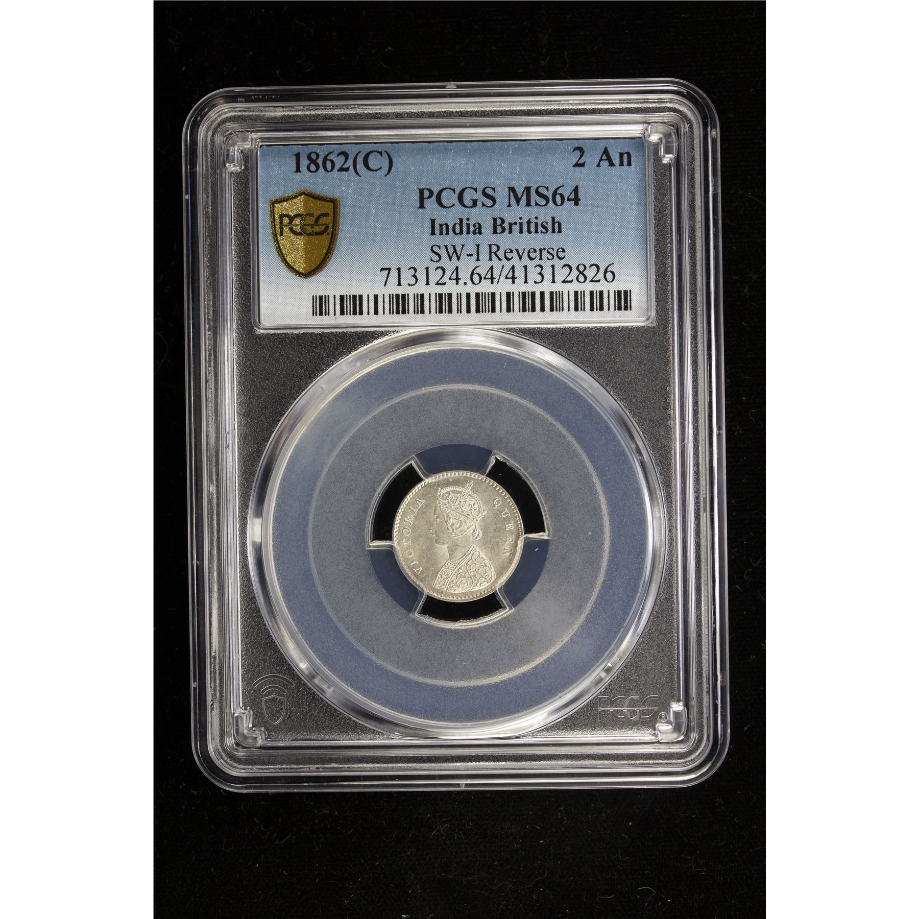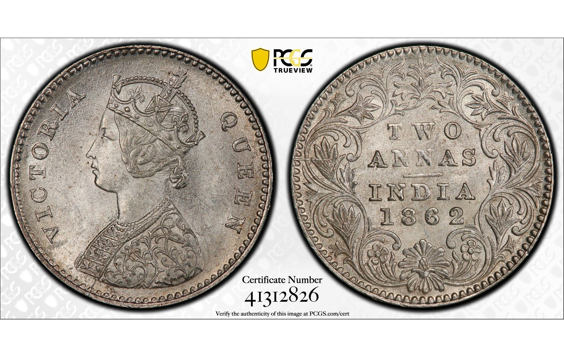BRITISH INDIA: Victoria, Queen, 1837-1876, AR 2 annas, 1862(c). PCGS MS64