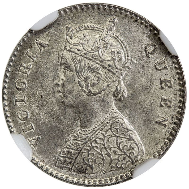 BRITISH INDIA: Victoria, Queen, 1837-1876, AR 2 annas, 1875(c), KM-469, S&W-5.36, NGC graded MS65.