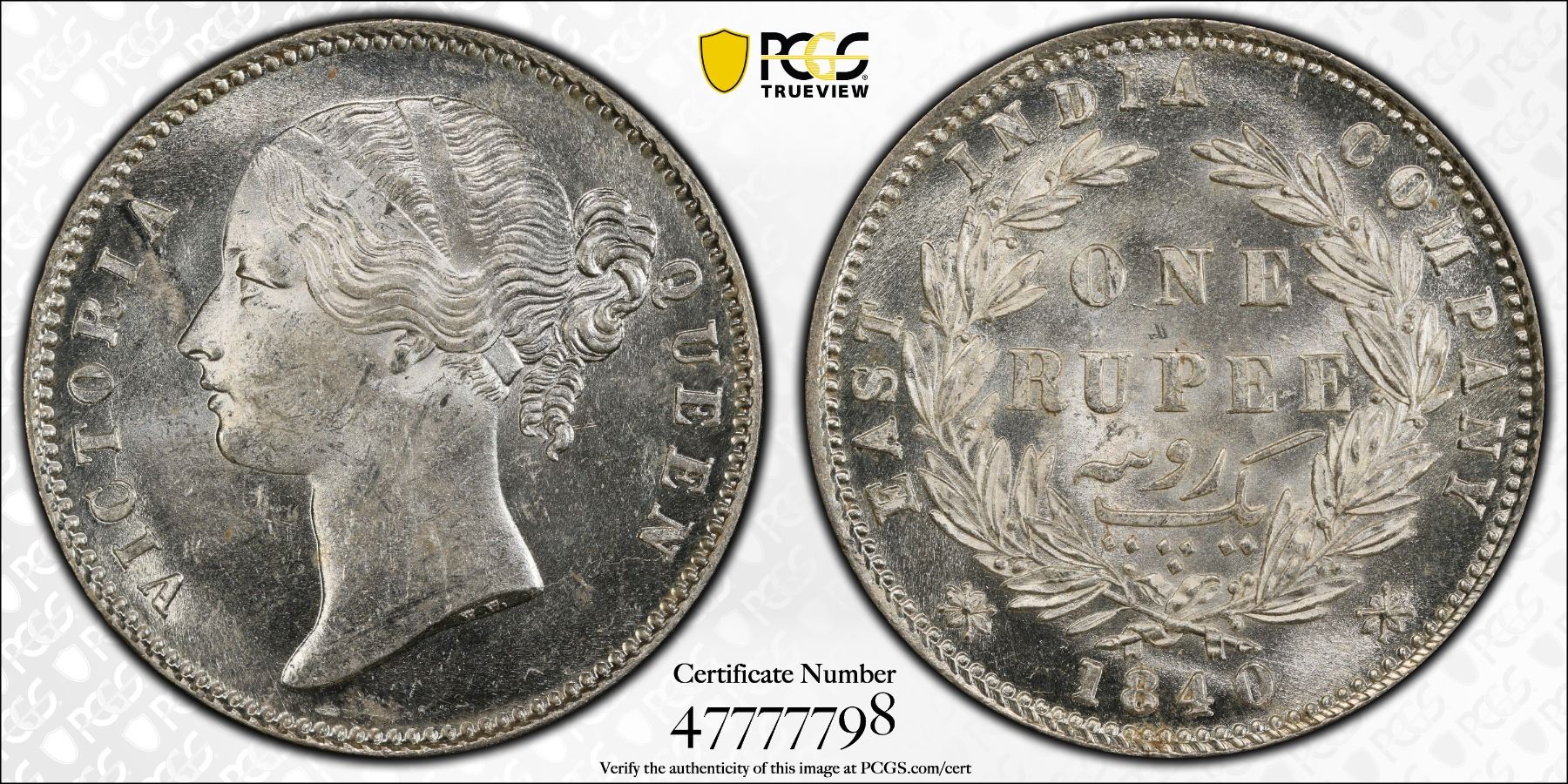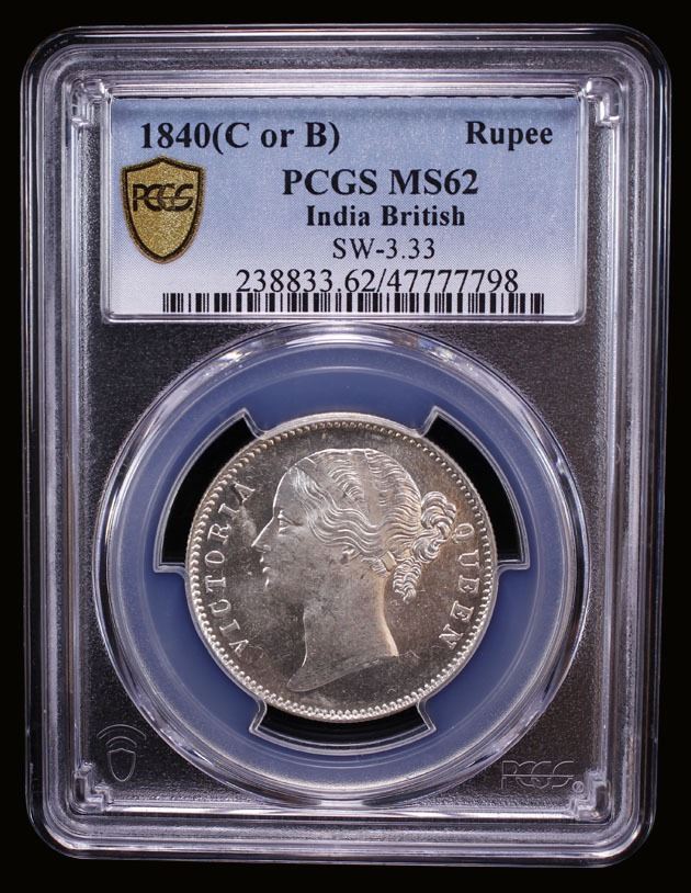 BRITISH INDIA: Victoria, Queen, 1837-1876, AR rupee, 1840(b&c), PCGS MS62