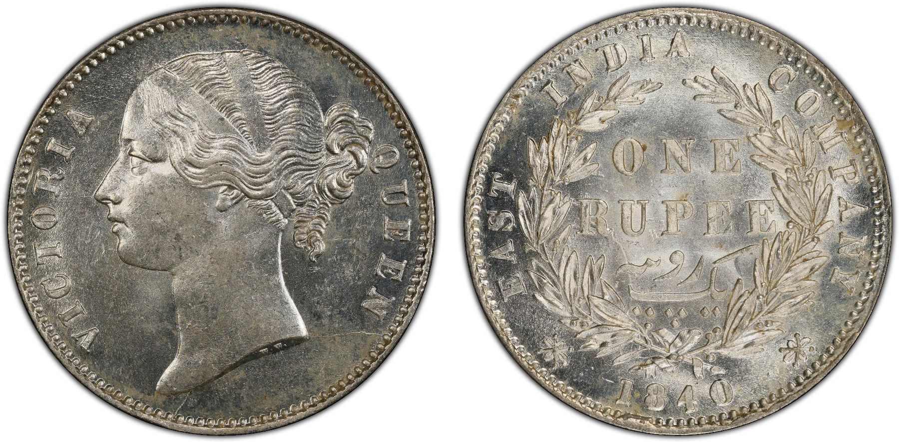 BRITISH INDIA: Victoria, Queen, 1837-1876, AR rupee, 1840(b&c), PCGS MS63