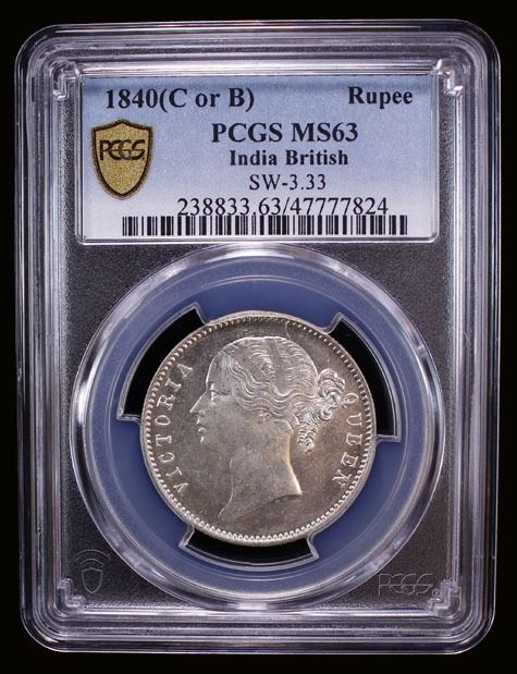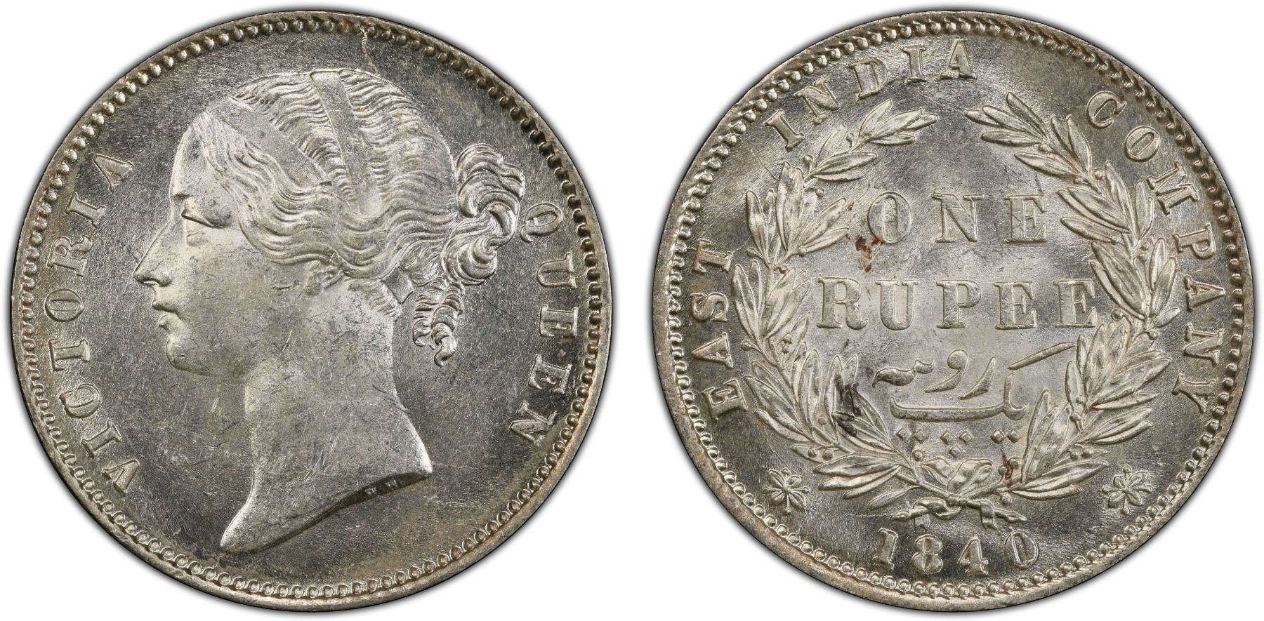 BRITISH INDIA: Victoria, Queen, 1837-1876, AR rupee, 1840(b&c), PCGS MS63