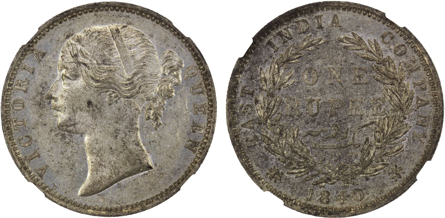 BRITISH INDIA: Victoria, Queen, 1837-1876, AR rupee, 1840(m), NGC AU58