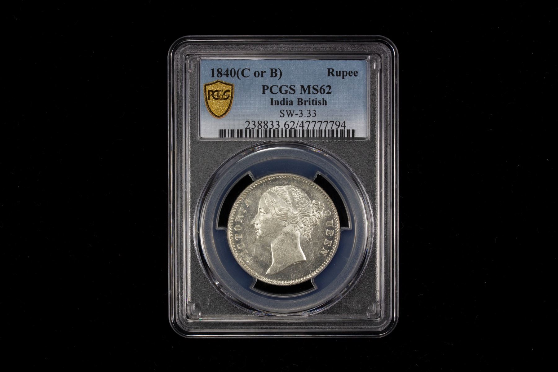 BRITISH INDIA: Victoria, Queen, 1837-1876, AR rupee, 1840b&c, PCGS MS62