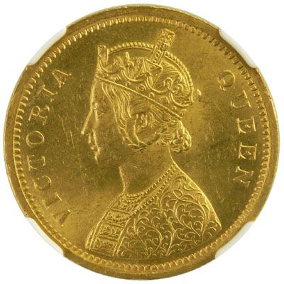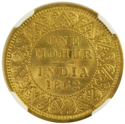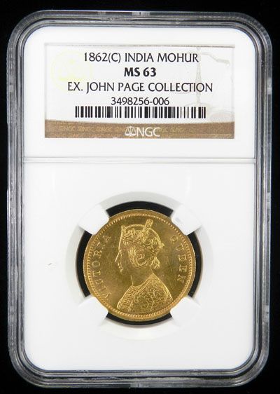 BRITISH INDIA: Victoria, Queen, 1837-1876, AV mohur, 1862(c), KM-480, Y-15, NGC graded MS63, ex. John Page Collection.
