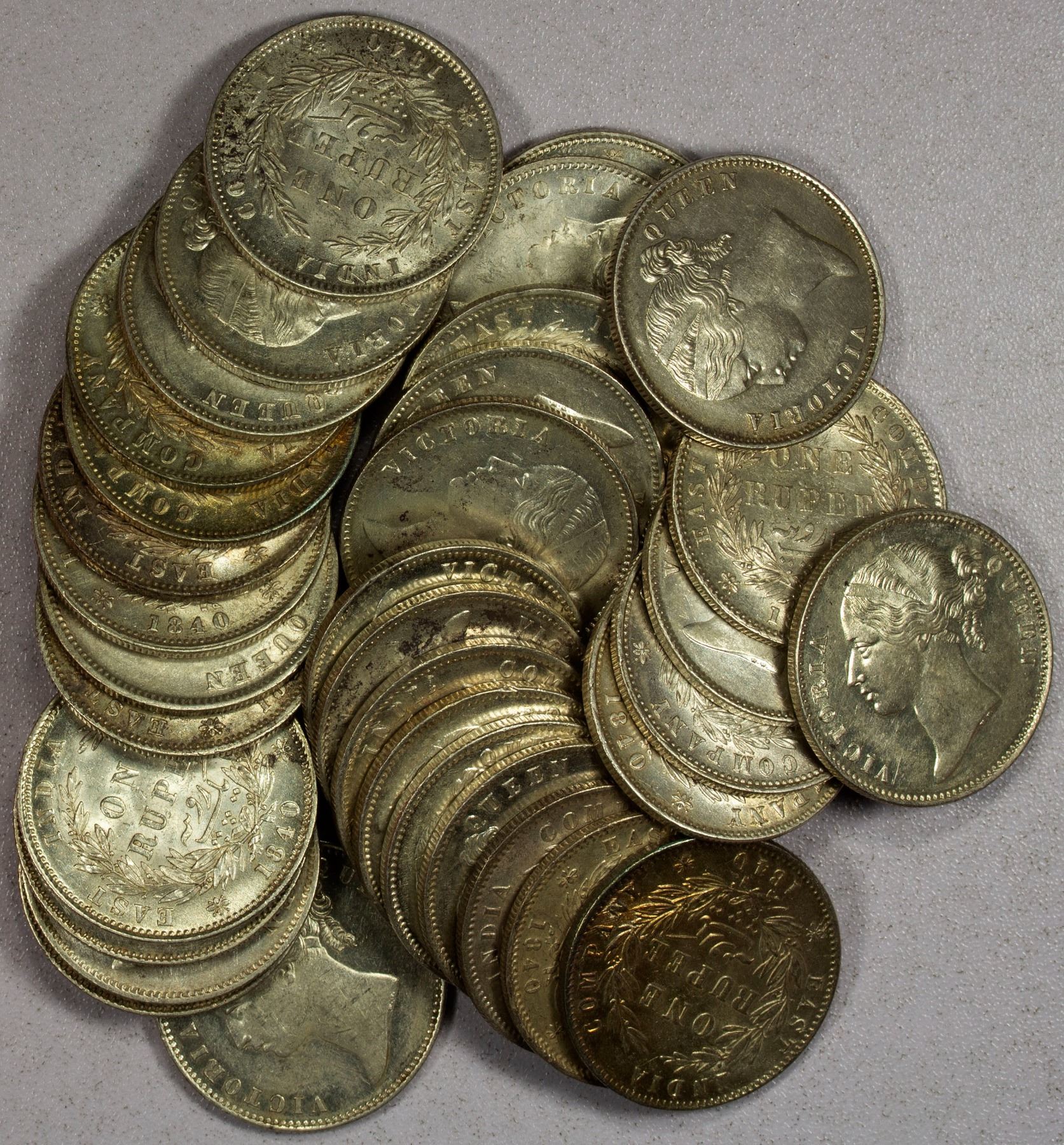 BRITISH INDIA: Victoria, Queen, 1837-1876, LOT of 34 AR rupees