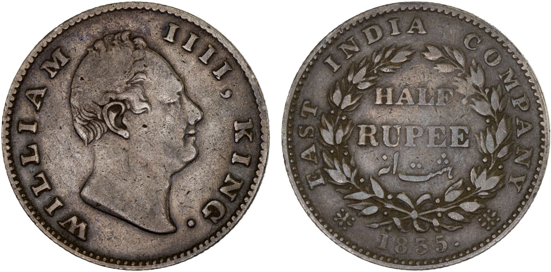 BRITISH INDIA: William IV, 1830-1837, AR 1/2 rupee, 1835(b), F-VF