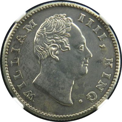 BRITISH INDIA: William IV, 1830-1837, AR ½ rupee, 1835 (c), KM-449.2, raised F on truncation of neck, early proof restrike, NGC graded Proof 62.