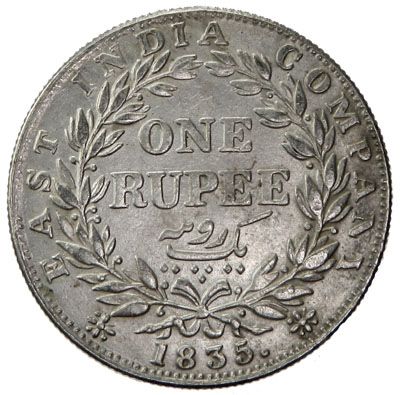 BRITISH INDIA: William IV, 1830-1837, AR rupee, 1835, KM-450.1, East India Company issue, without initial, EF to About Unc.