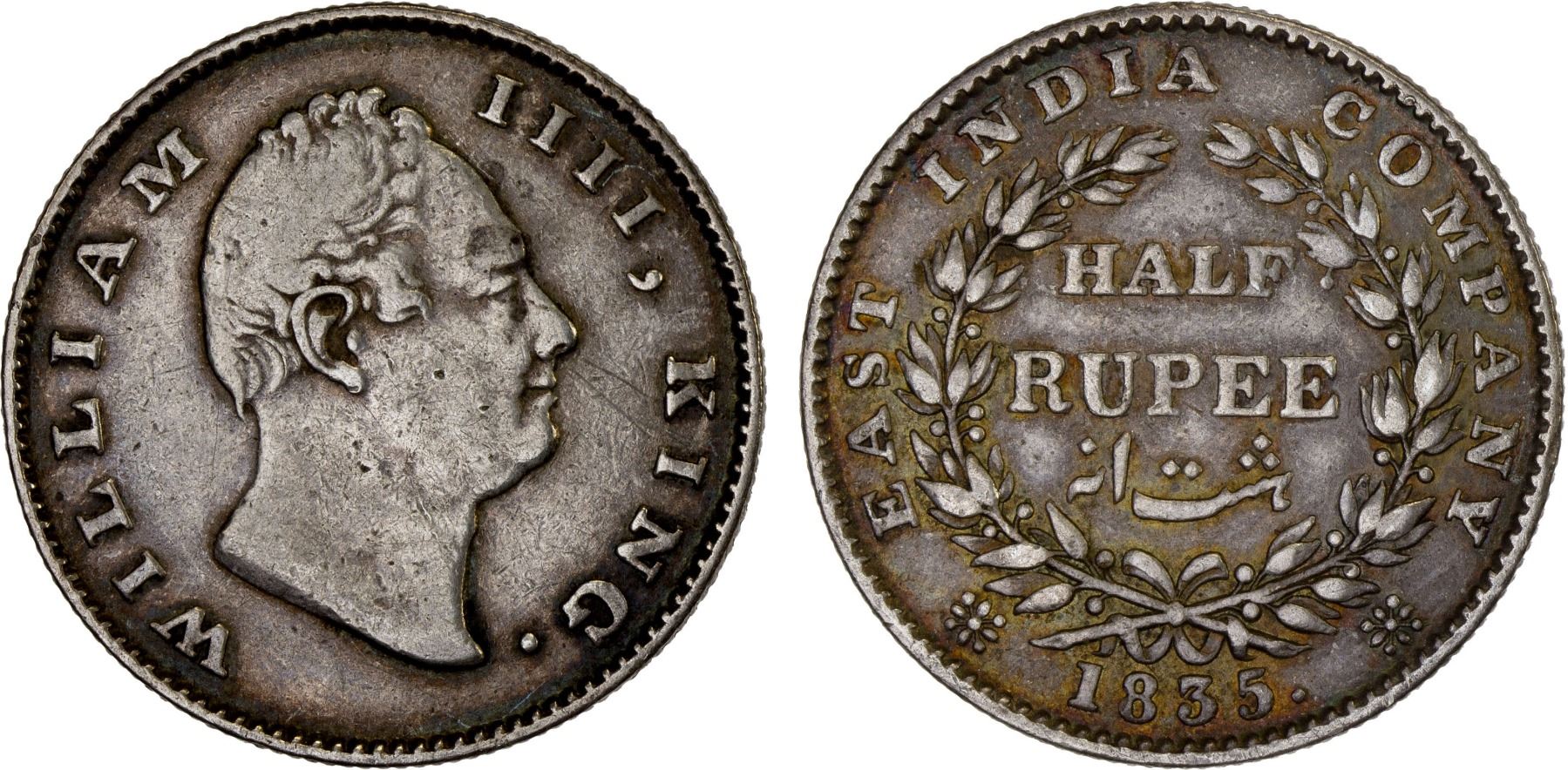 BRITISH INDIA: William IV, 1830-1837, AR ½ rupee, 1835(b), Fine