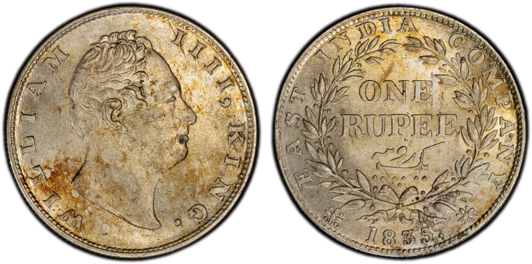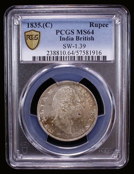 BRITISH INDIA: William IV, 1830-1837, AR rupee, 1835(c), PCGS MS64