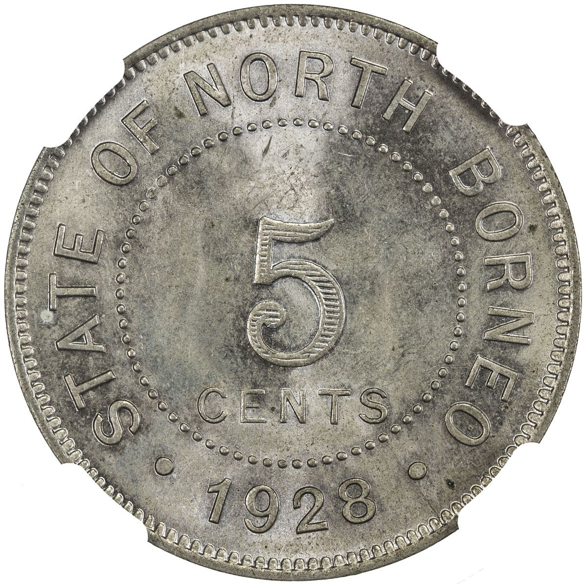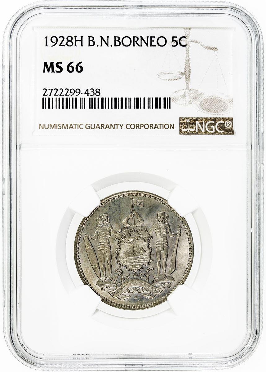 BRITISH NORTH BORNEO: 5 cents, 1928-H, KM-5, NGC graded MS66.