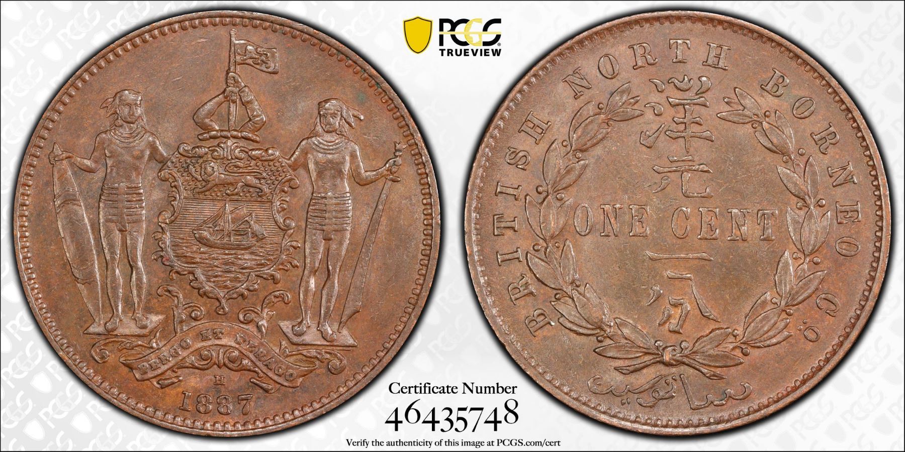 BRITISH NORTH BORNEO: AE cent, 1887-H, KM-29, British North Borneo Company issue, an attractive mint state example, PCGS graded MS62 BN.