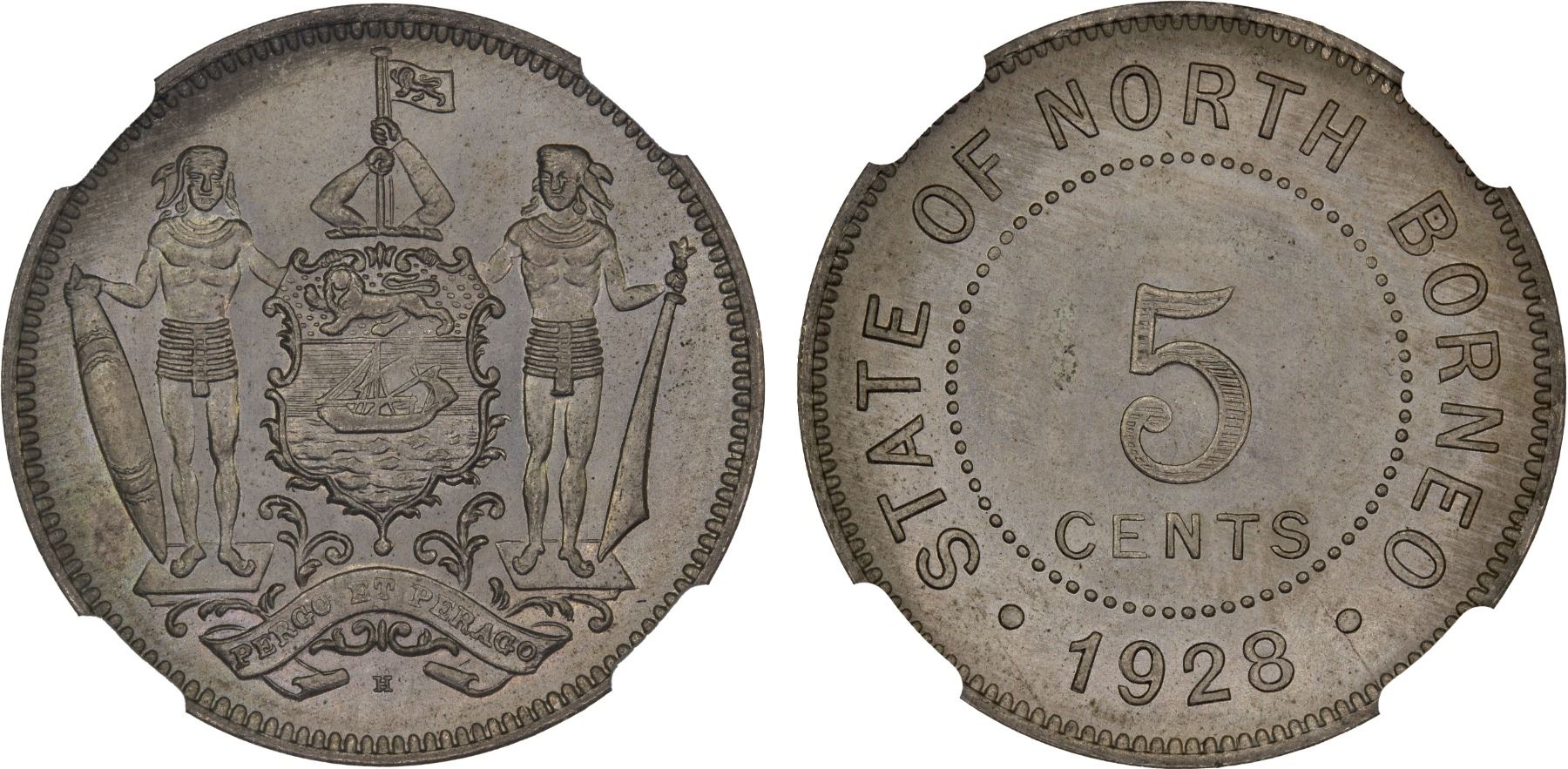 BRITISH NORTH BORNEO: George V, 1910-1936, 5 cents, 1928-H, NGC MS66