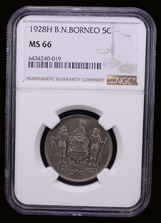 BRITISH NORTH BORNEO: George V, 1910-1936, 5 cents, 1928-H, KM-5, better date, a lovely example! NGC graded MS66.