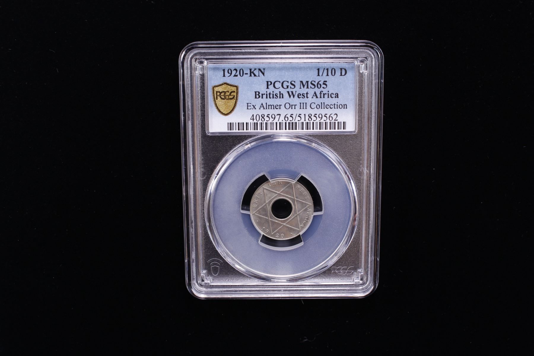 BRITISH WEST AFRICA: George V, 1911-1936, 1/10 penny, 1920-KN, KM-7, Kings Norton Metal Company, Birmingham Mint, a superb example, PCGS graded MS65, ex Almer H. Orr III Collection.