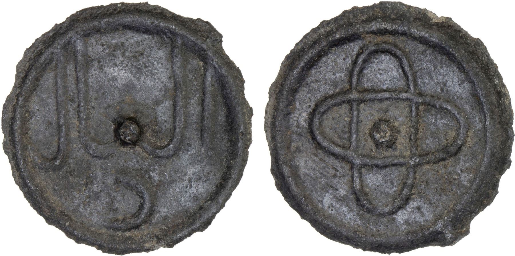 BRUNEI: Anonymous, 18th/19th century, tin pitis (1.36g), SS-27A, Jawi inscription al-'adil // linked quatrefoil, dot in center, choice XF.