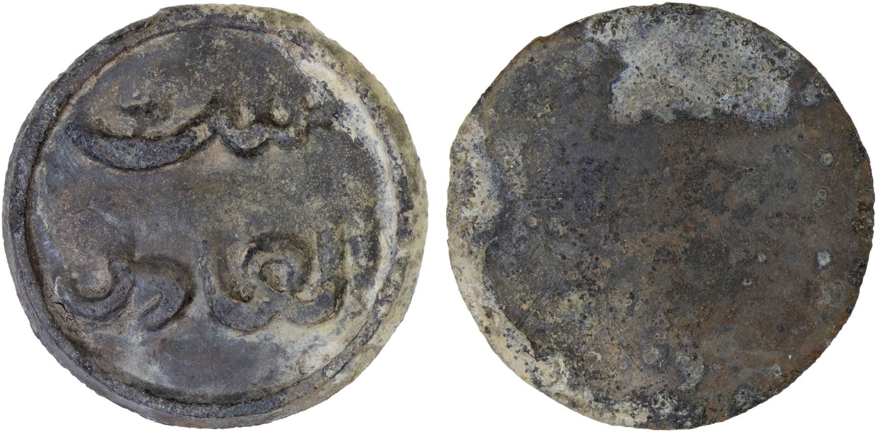 BRUNEI: Anonymous, 18th/19th century, tin pitis (3.00g), SS-26B (same mold), Arabic legend malik / al-'adil with the word malik crudely engraved; blank reverse, VF-XF.
