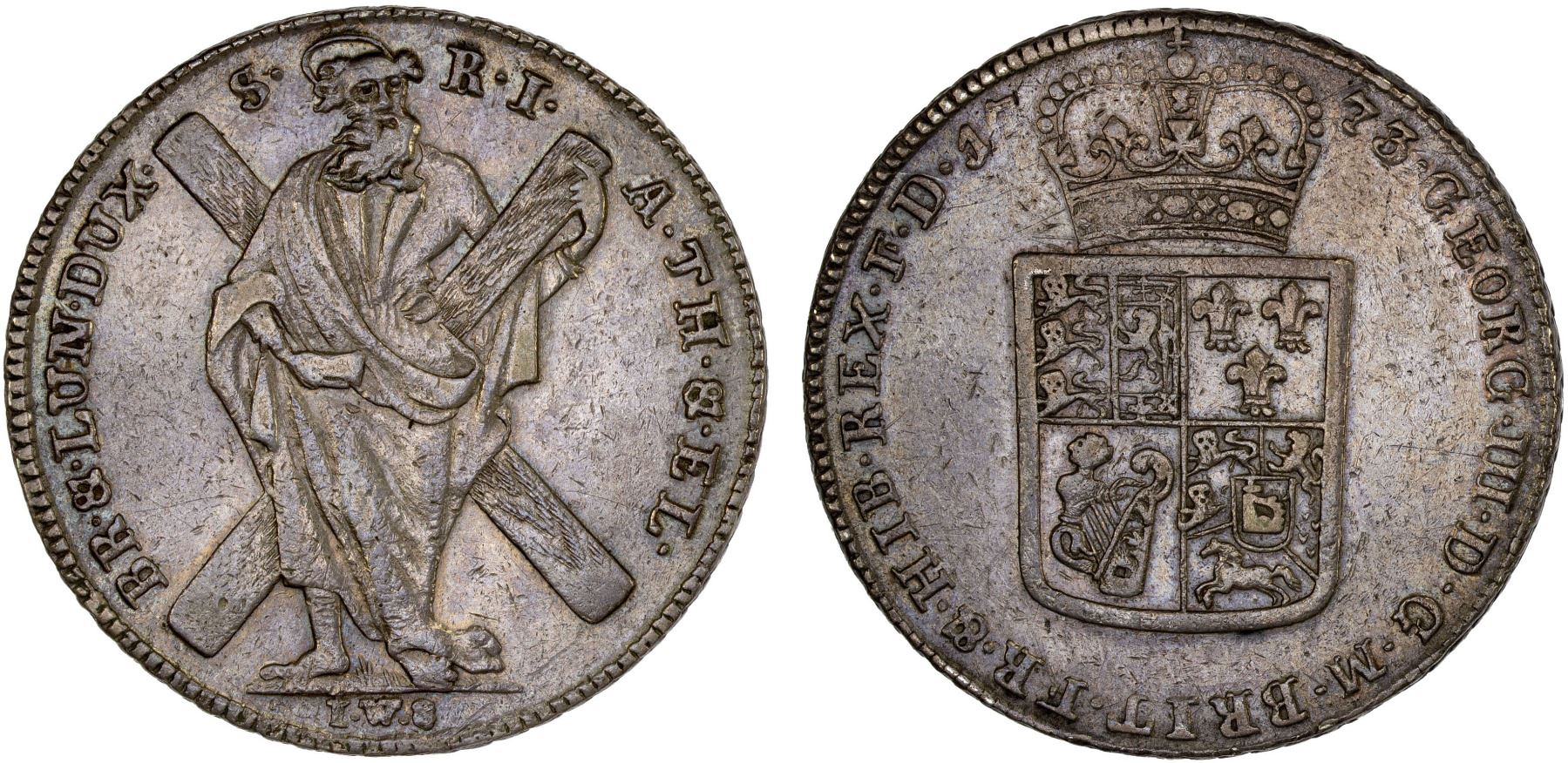 BRUNSWICK-LÜNEBURG-CALENBERG-HANOVER: George III, 1760-1820, AR thaler (29.21g), 1773, Dav-2104, once very lightly cleaned and re-toned, XF.