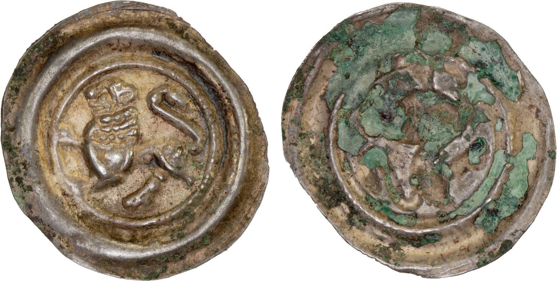 BRUNSWICK-LÜNEBURG: Wilhelm, 1195-1213, AR denier bracteate (0.52g), Löbbecke-169, Welter-95, Bonhoff -76, Fiala-270, lion left within inner circle, XF.