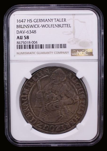 BRUNSWICK-WOLFENBÜTTEL: August II, 1634-1666, AR thaler, 1647, NGC AU58