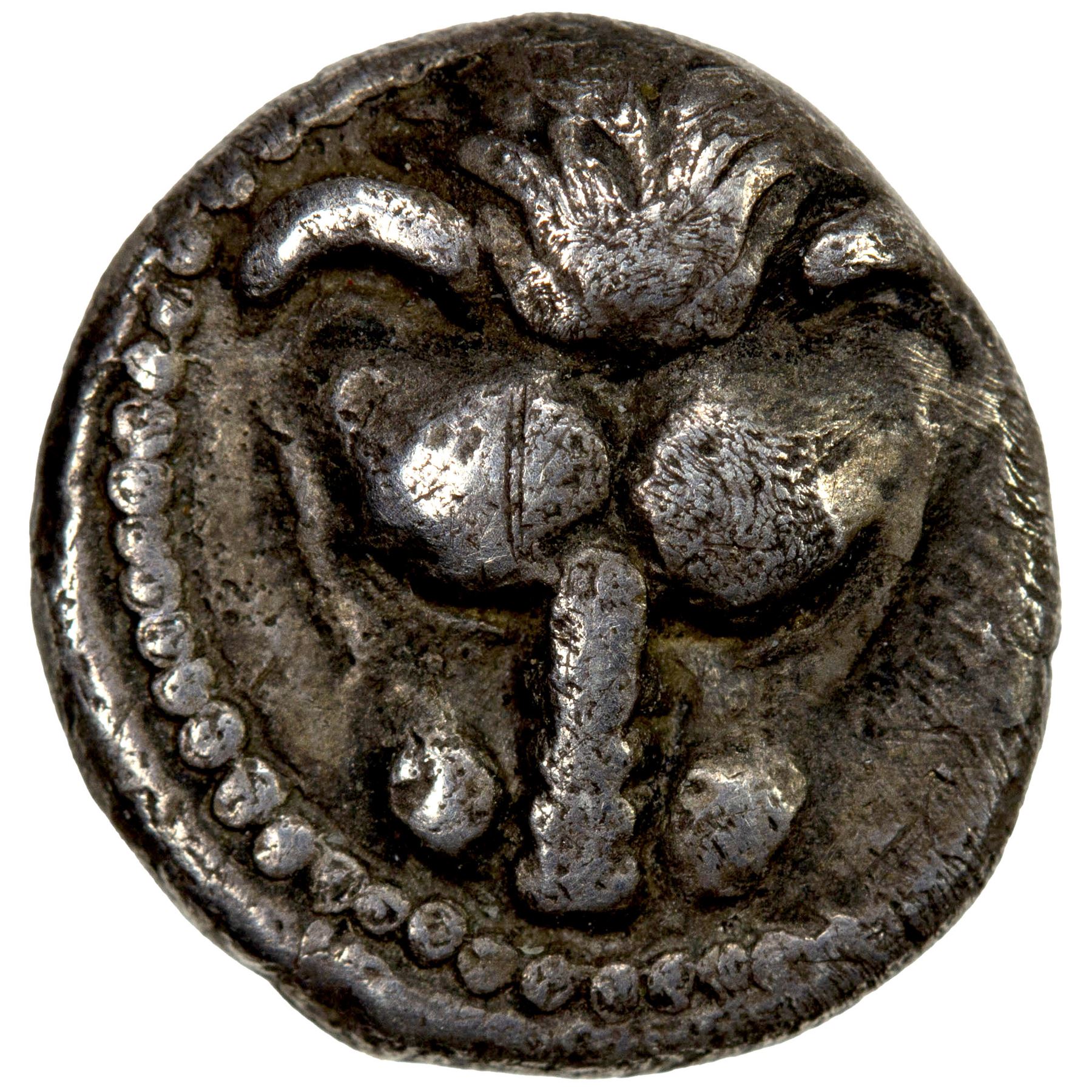 BRUTTIUM: Rhegion, AR obol (1.03g), ca. 510 BC, HNI-2471, scalp of facing lion // REC in retrograde within dotted border, VF.