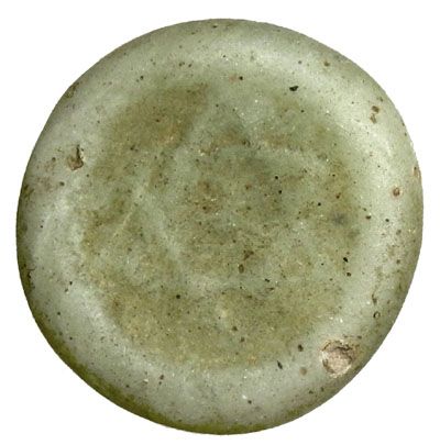 BURJI MAMLUK: Anonymous, glass-paste jeton (3.01g), A-1047, NLC 6130-32; Petrie 694-6, 20.5mm, hexagram with small central annulet, milky greenish-white, opaque, small purple-brown occlusion on reverse, Fine. Attribution to the Mamluks is tentative.