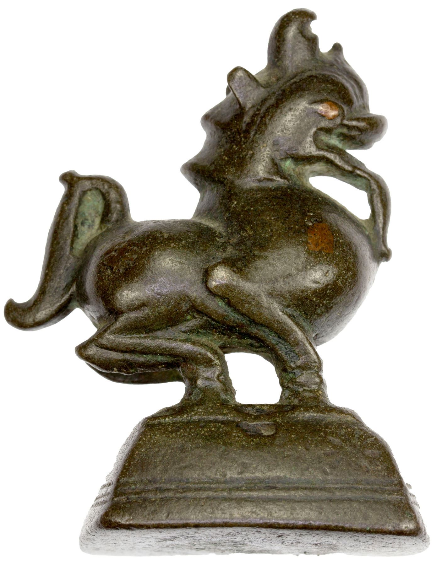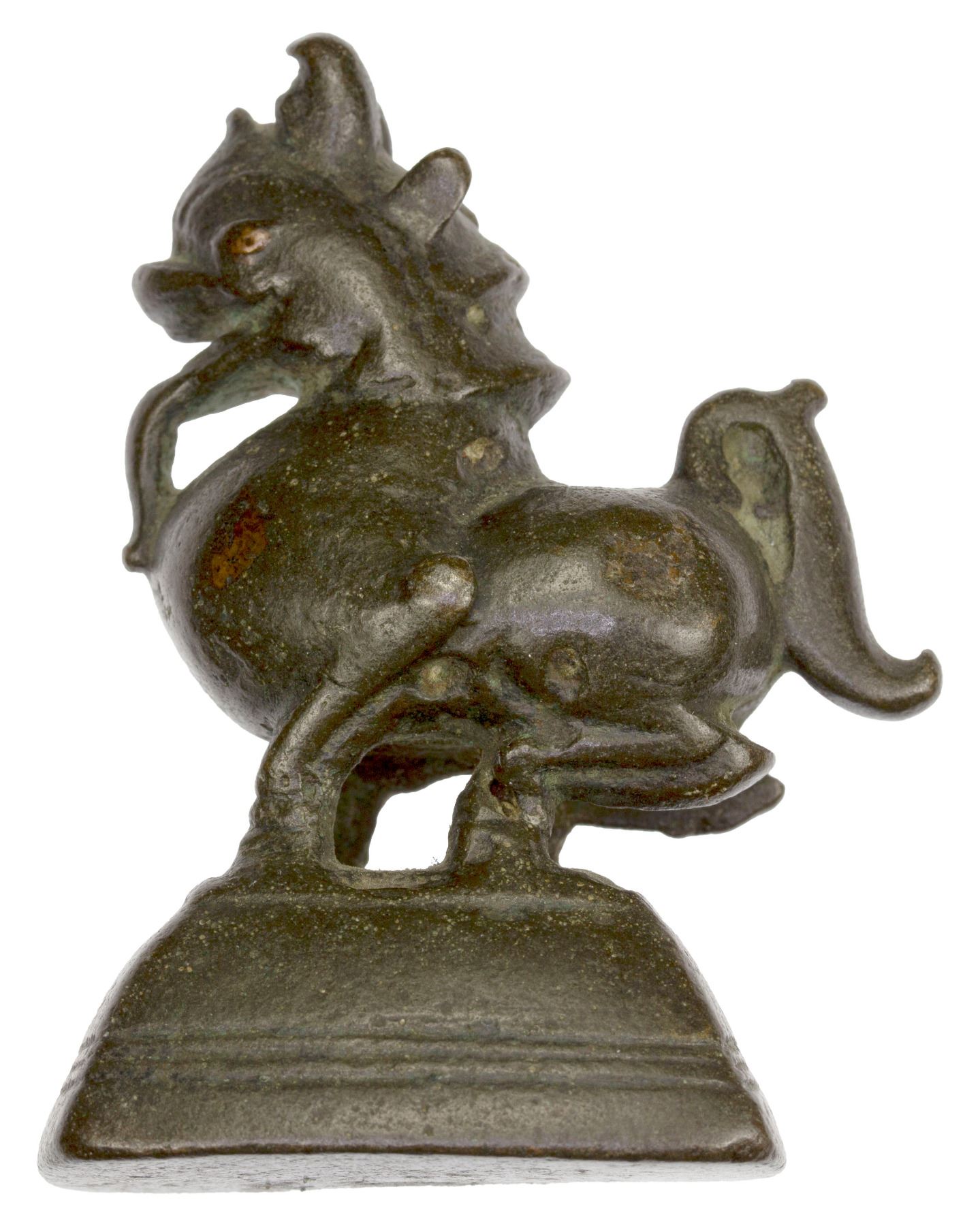 BURMA: AE opium weight (324.08g), ca. 1757-1867, 67mm tall, lion-type on square base with star sign, cast to a standard of 20 kyat, VF.
