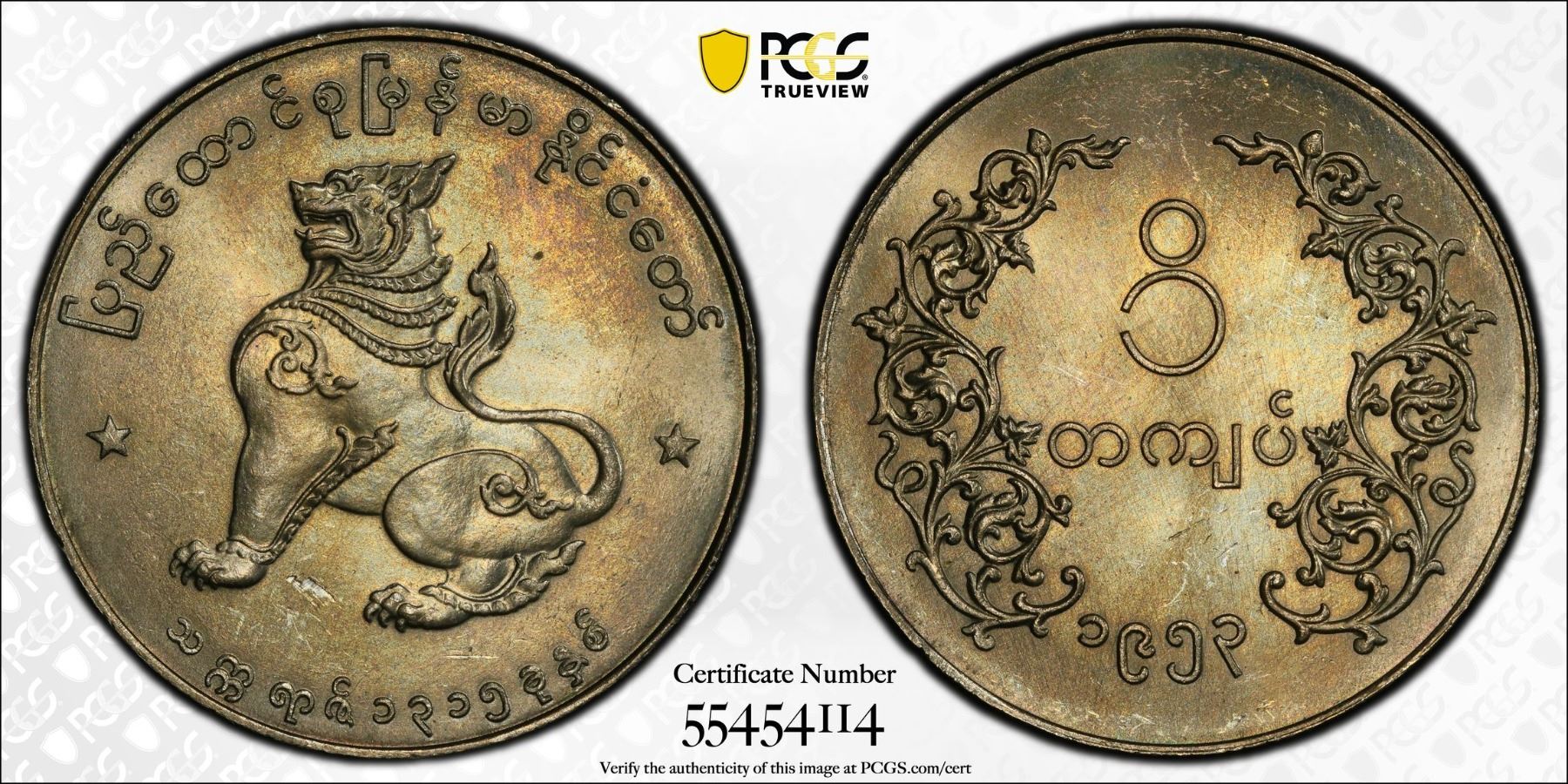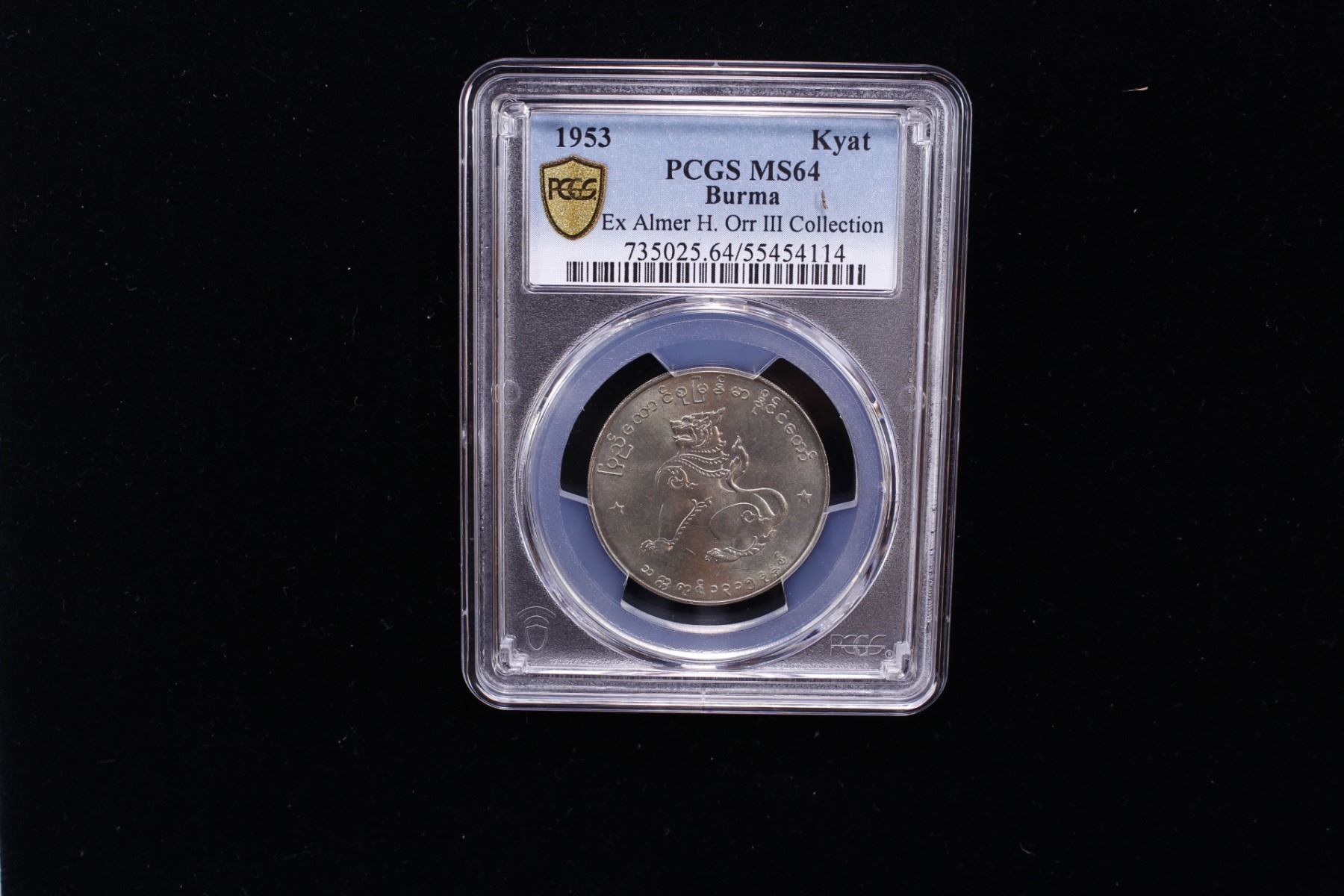 BURMA: Union, 1 kyat, 1953, KM-37, lustrous, PCGS graded MS64, ex Almer H. Orr III Collection.