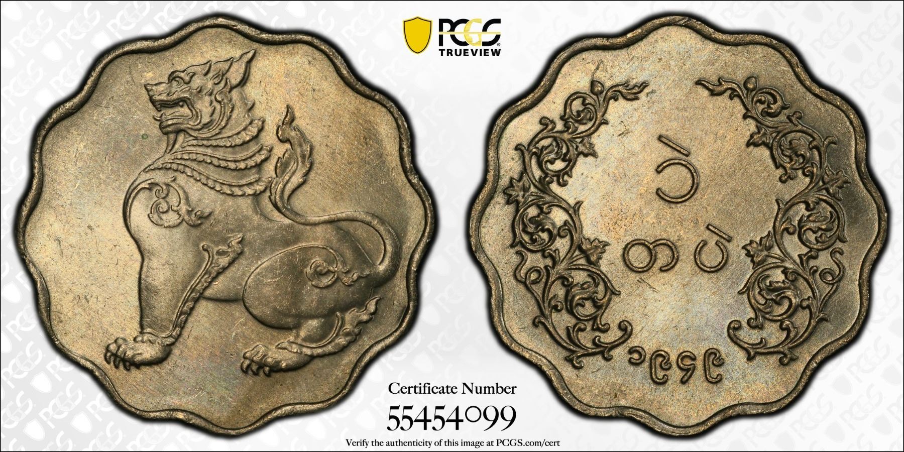 BURMA: Union, 1 pe, 1949, KM-28, lustrous, PCGS graded MS63, ex Almer H. Orr III Collection.