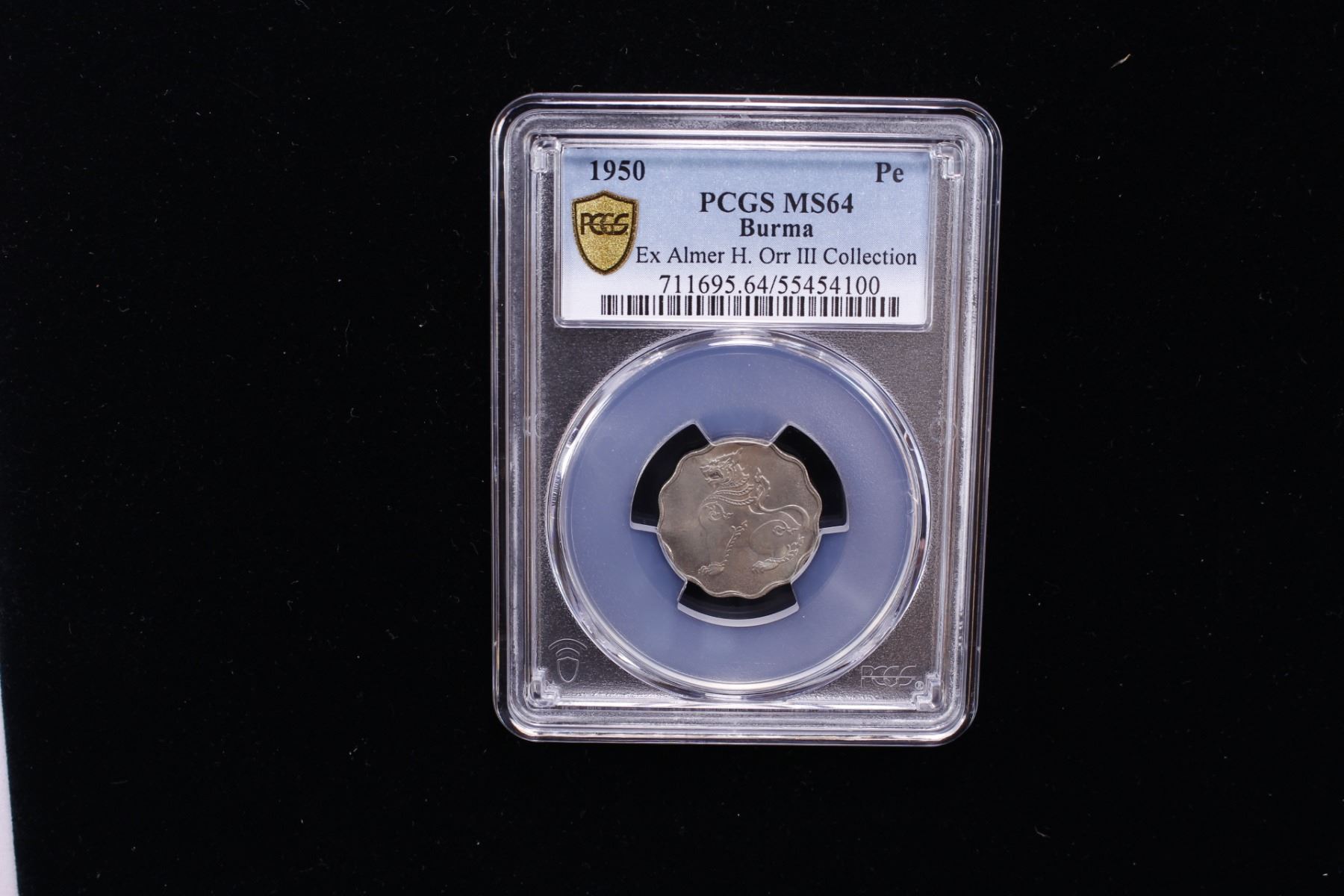 BURMA: Union, 1 pe, 1950, KM-28, lustrous, PCGS graded MS64, ex Almer H. Orr III Collection.
