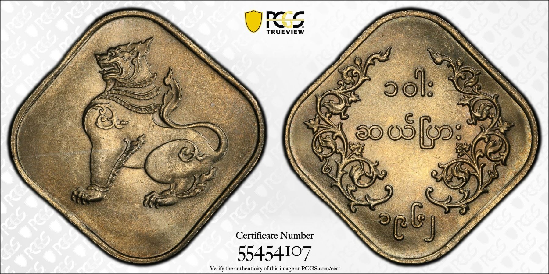BURMA: Union, 10 pyas, 1962, KM-34, very lustrous, key date, PCGS graded MS65, ex Almer H. Orr III Collection.