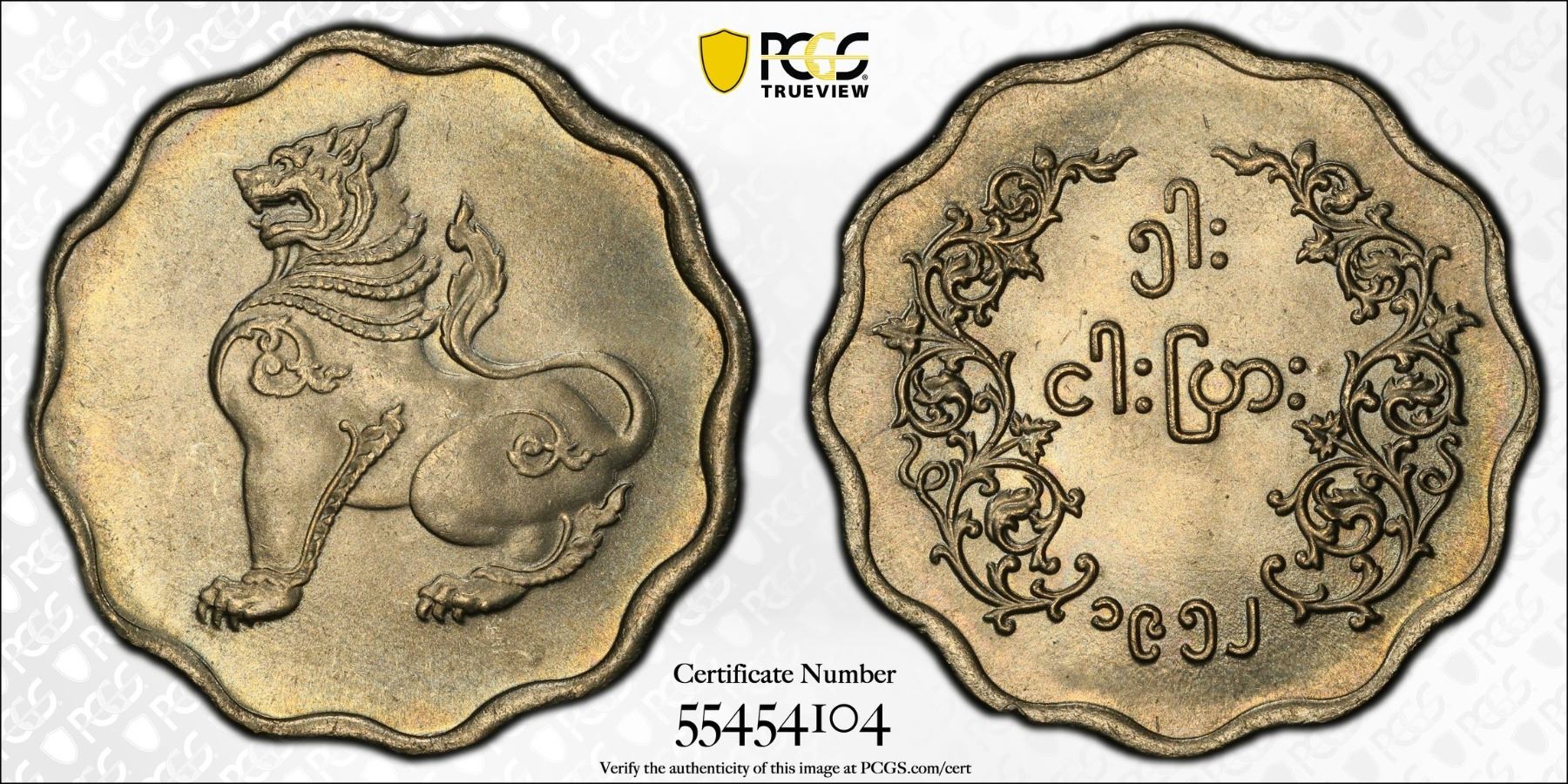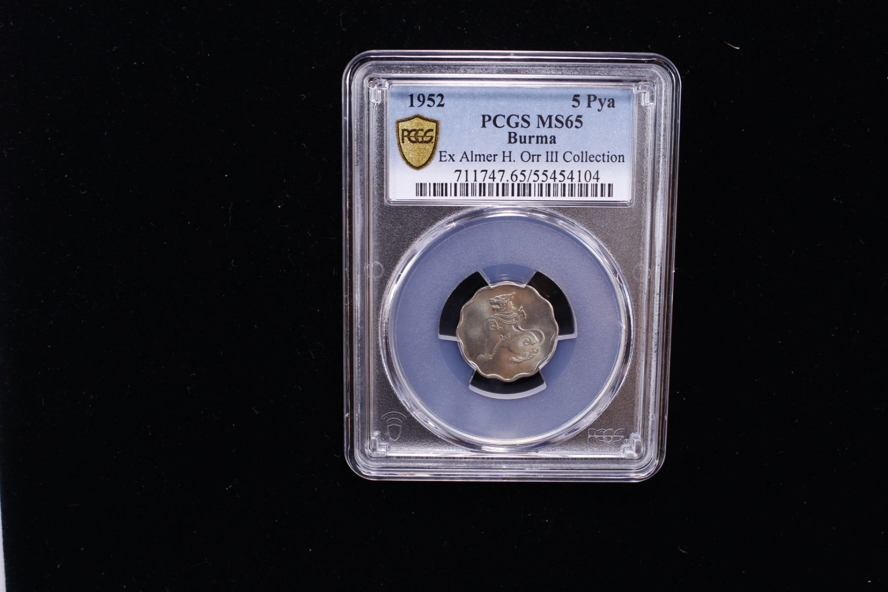 BURMA: Union, 5 pyas, 1952, KM-33, lustrous, PCGS graded MS65, ex Almer H. Orr III Collection.