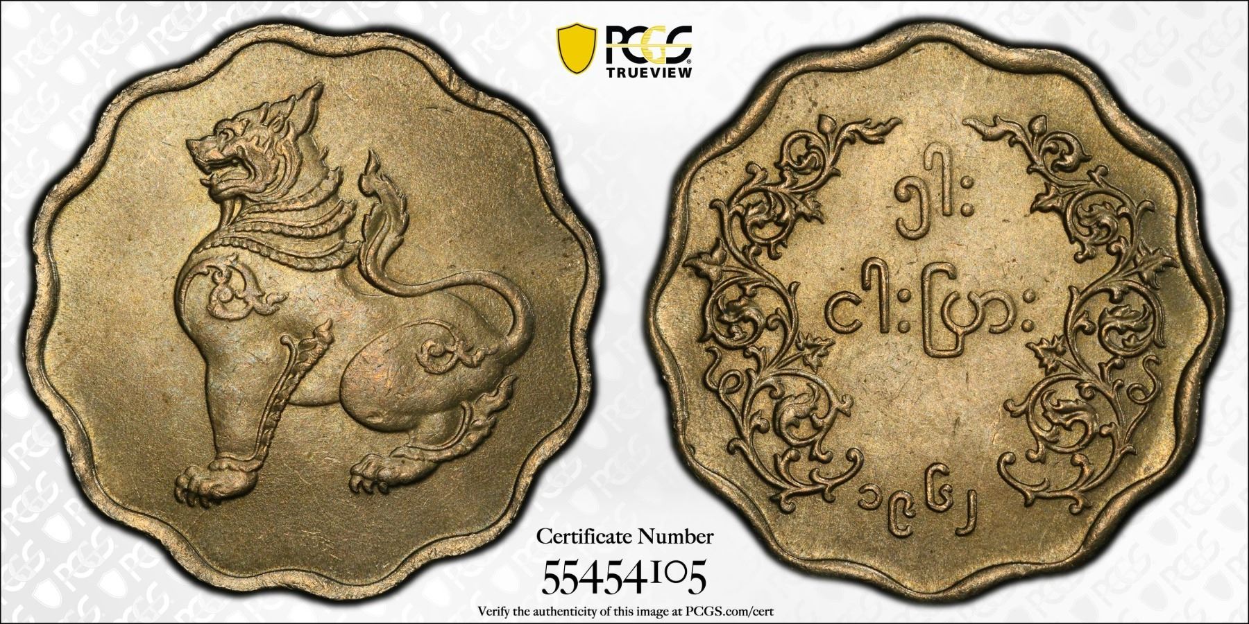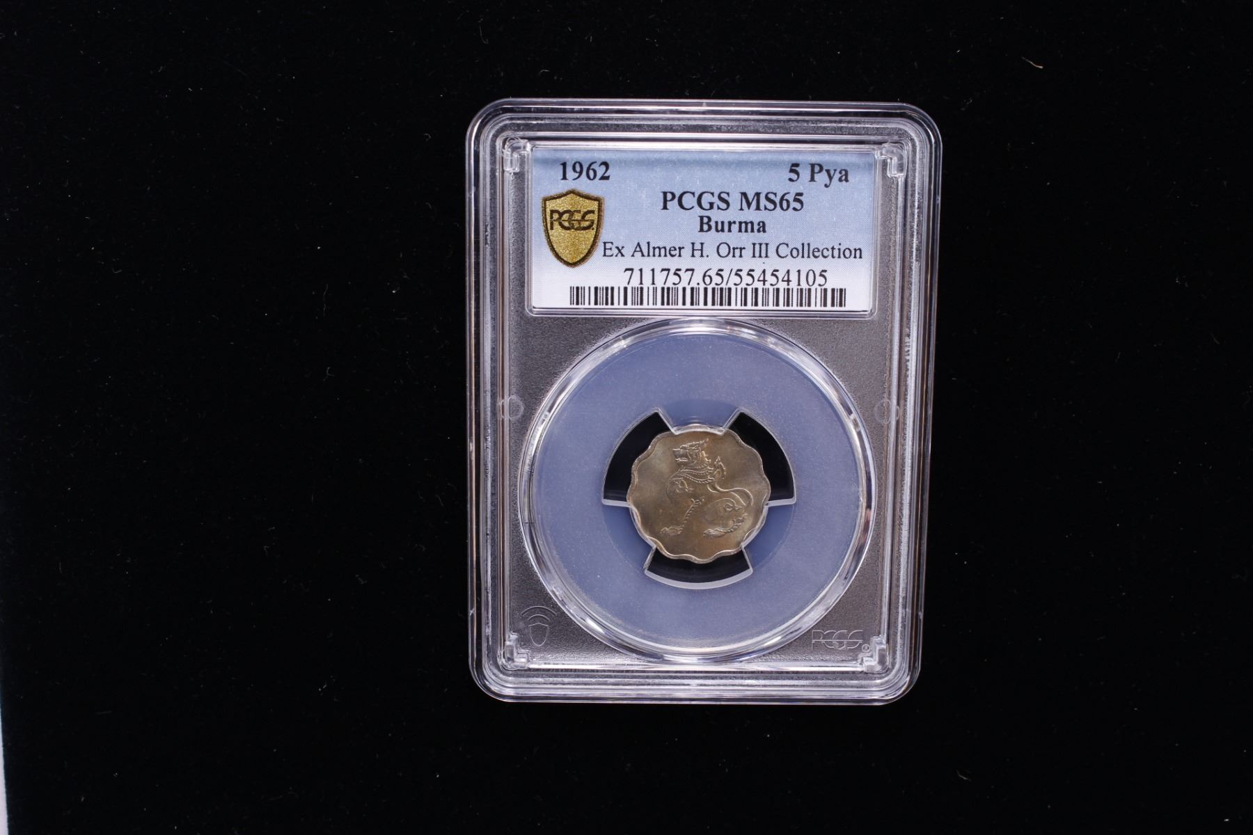 BURMA: Union, 5 pyas, 1962, KM-33, lustrous, key date, PCGS graded MS65, ex Almer H. Orr III Collection.