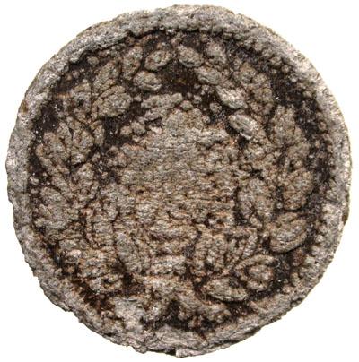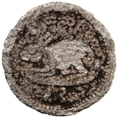 BURMA: lead 1/32 pe (6.86g), BE1231, KM-22.2, R&S-11.16, hare facing left, usual discoloration for the lead coins, Fine, R, ex. Eck Prud'homme collection.  This denomination can be called either 1/32 pe or 1/8 pya, much as a US quarter dollar can be called either "2 bits" or "25 cents".