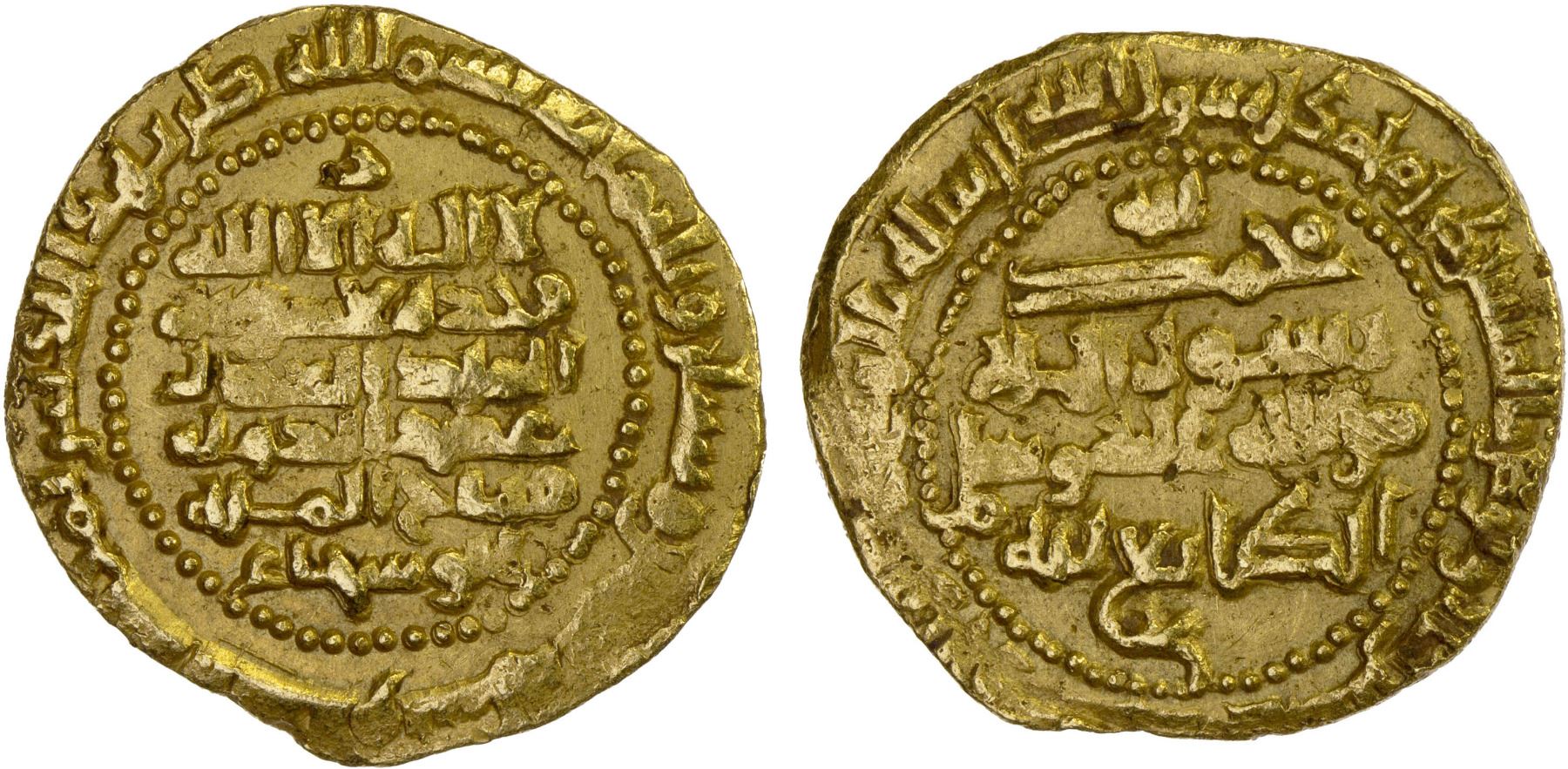 BUWAYHID: 'Adud al-Dawla, 949-983, AV dinar (3.88g), Madinat al-Salam, AH368, A-1551, Treadwell-, as sole ruler, exact legends as Treadwell-Ms367G dated 367, but the following year, different legend than the three silver dirhams dated 368 published by Treadwell, VF, RR.