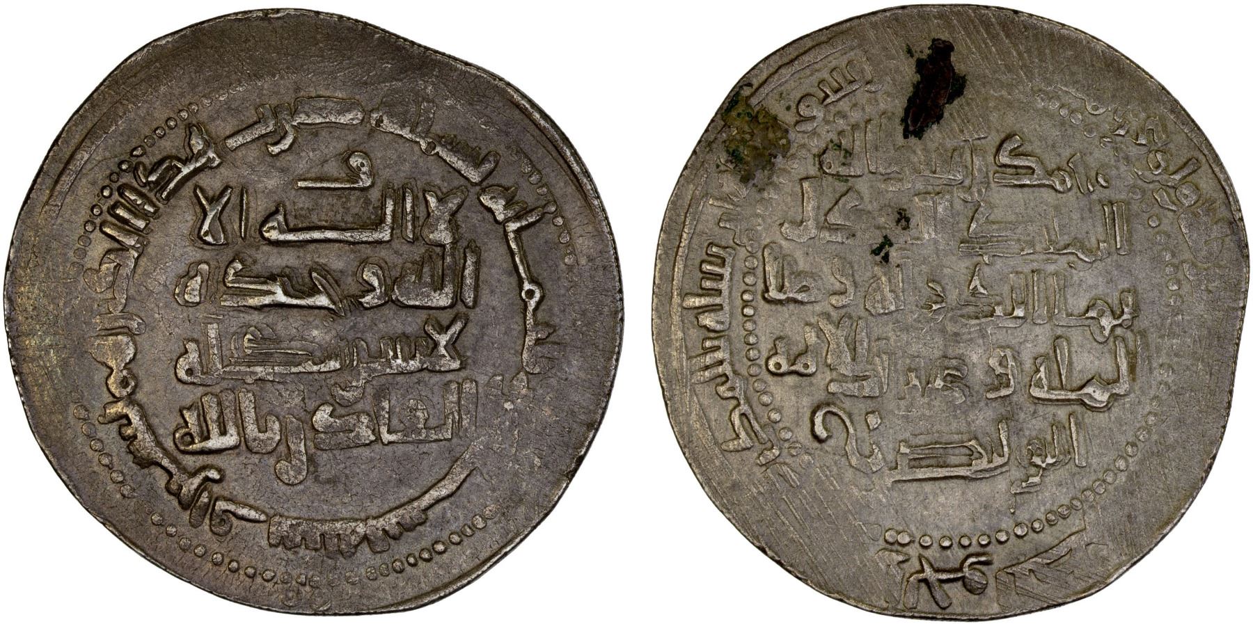 BUWAYHID: Baha' al-Dawla, 989-1012, AR dirham (5.12g), Siraf, AH390, A-1574, Treadwell-, citing the caliph al-Qahir, clear mint & date, with 2 stains on the reverse; latest confirmed date for the Buwayhid mint of Siraf, VF-XF, RRR. The latest confirmed Buwayhid dates for Siraf are AH385 and one tentative example dated 391 (Tr-Si391) with uncertain mint (probably not Siraf).