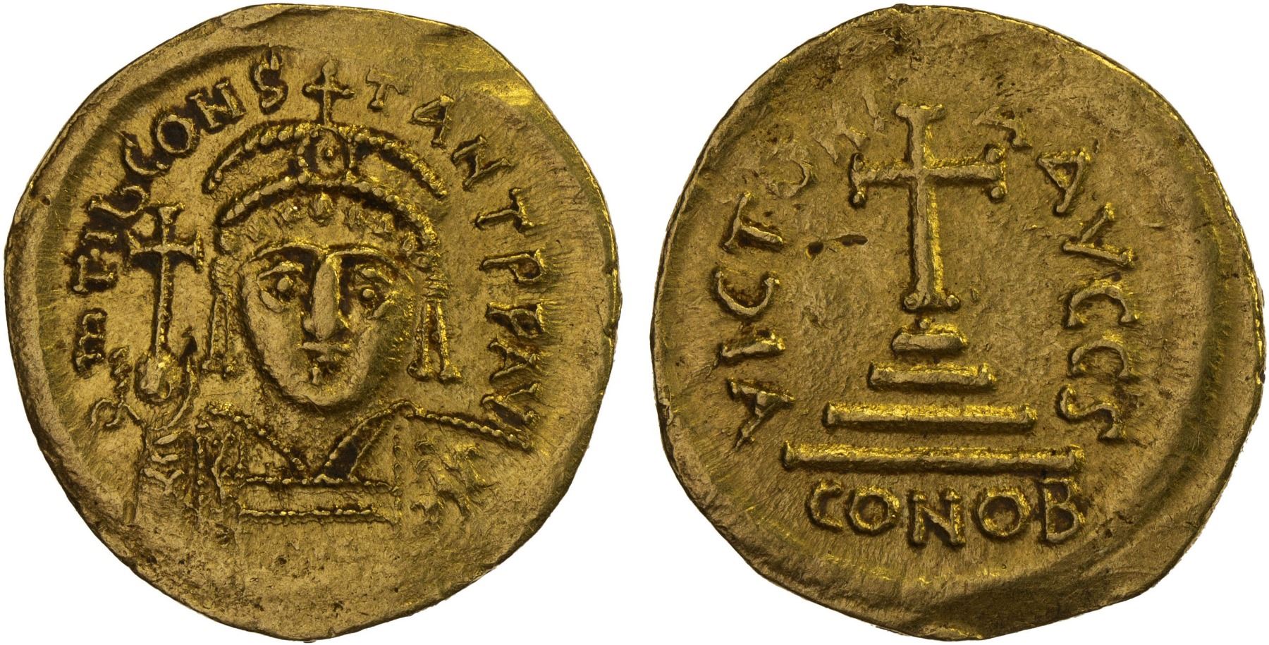 BYZANTINE EMPIRE: Tiberius II Constantine, 578-582, AV solidus (4.29g), Constantinople, VF-XF