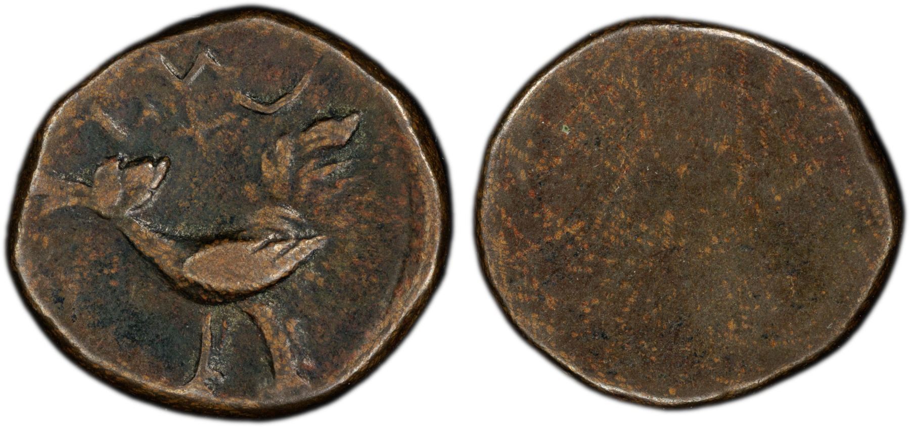 CAMBODIA: Ang Duong, 1840-1860, AE att (2.12g), CS1208 (1847), KM-1, hamsa bird left, date above, uniface, PCGS graded VF25.