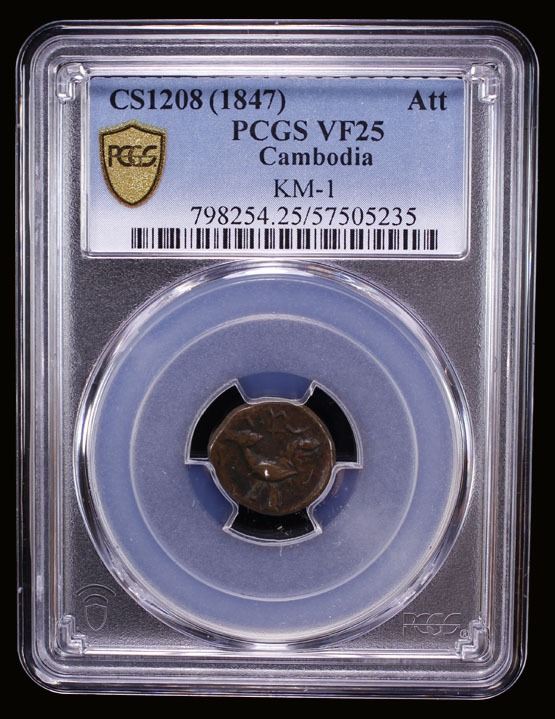 CAMBODIA: Ang Duong, 1840-1860, AE att (2.12g), CS1208 (1847), PCGS VF25