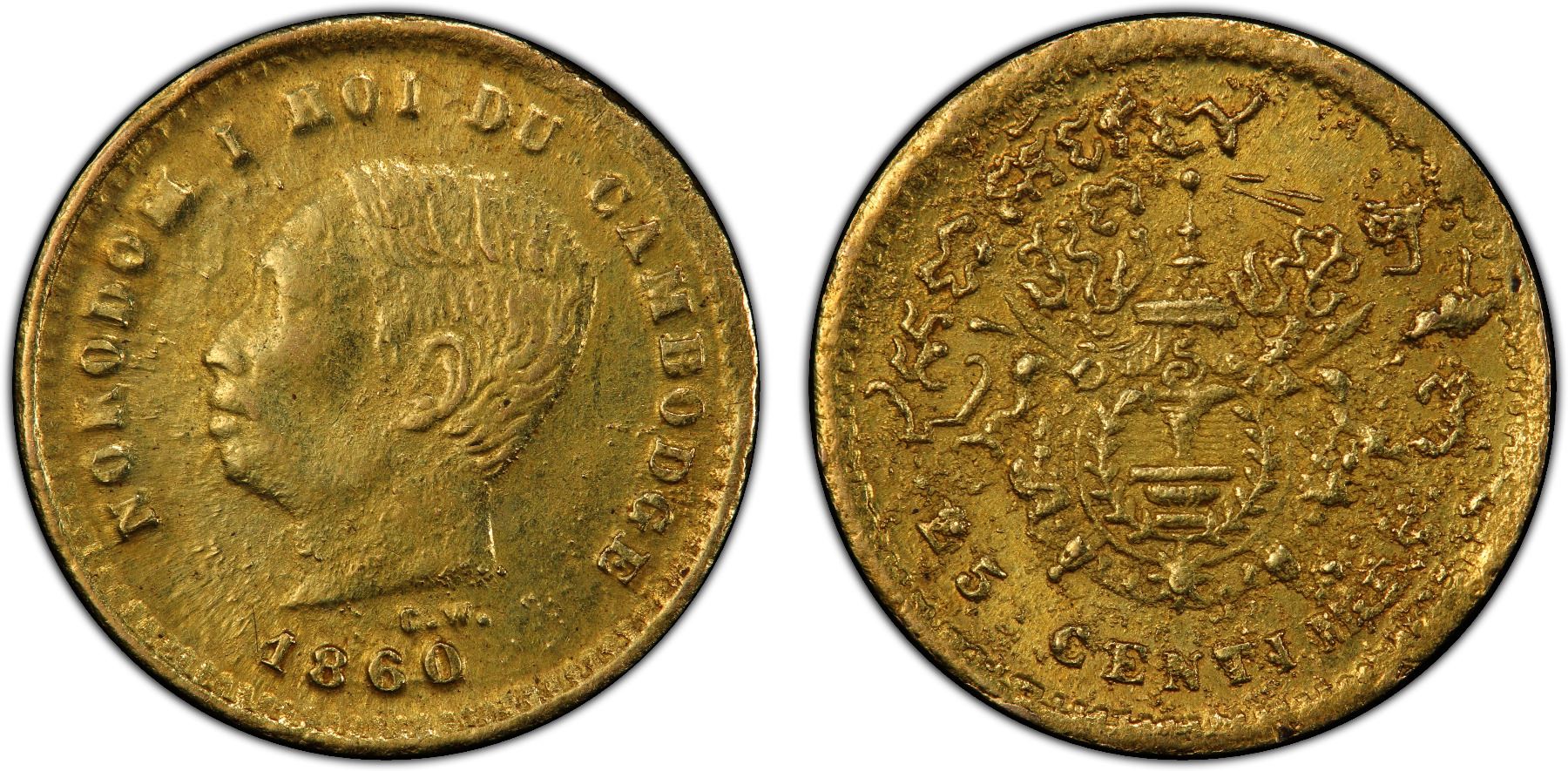 CAMBODIA: Norodom I, 1859-1904, AV 25 centimes, Phnom Penh, 1860 (1899), PCGS Specimen 63