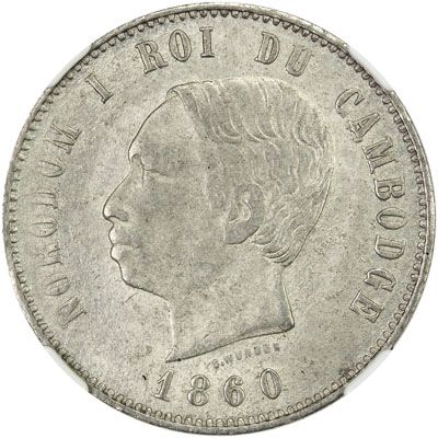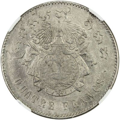 CAMBODIA: Norodom I, 1860-1904, AR 4 francs, KM-48.2, local official restrike struck at the Phnom Penh mint from 1887-1901, NGC graded MS61.