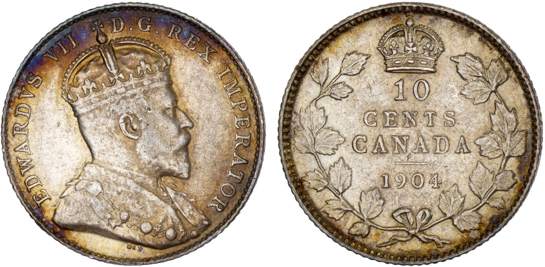 CANADA: Edward VII, 1901-1910, AR 10 cents, 1904, KM-10, light obverse tone, attractive, XF.