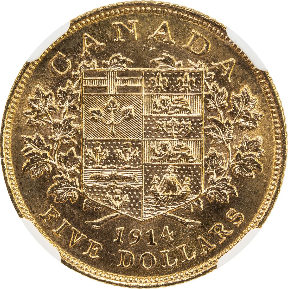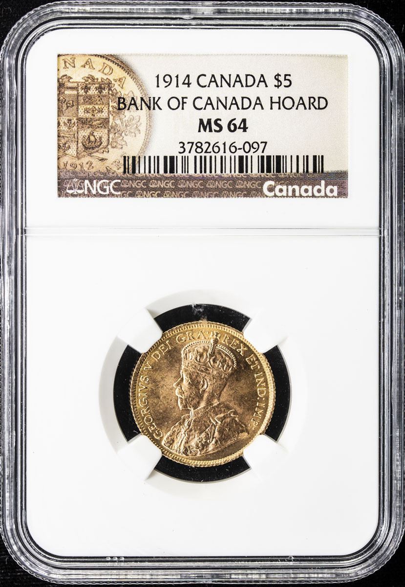 CANADA: George V, 1910-1936, AV 5 dollars, 1914, KM-26, NGC graded MS64, ex Bank of Canada Hoard.
