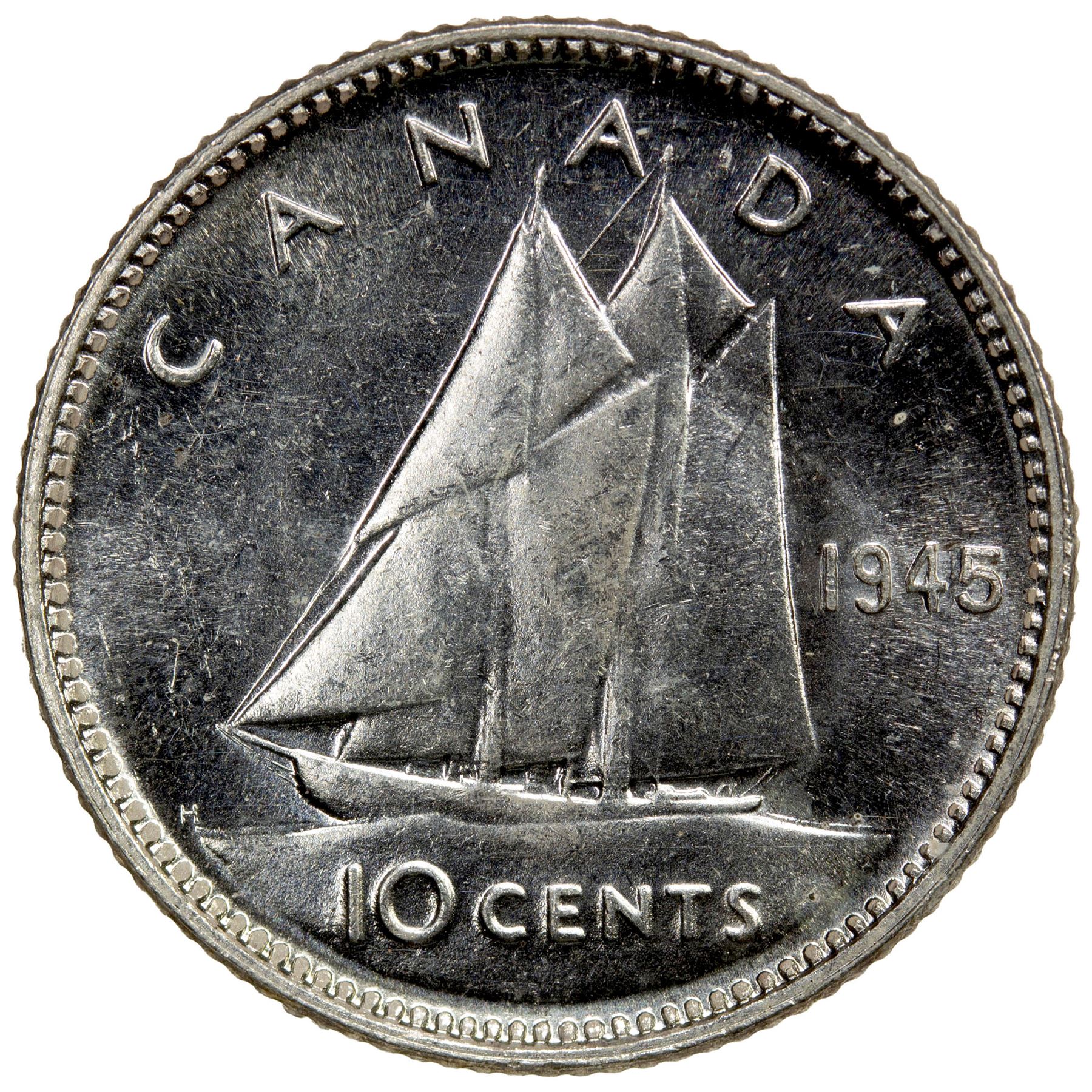CANADA: George VI, 1936-1952, AR 10 cents, 1945, Choice Unc