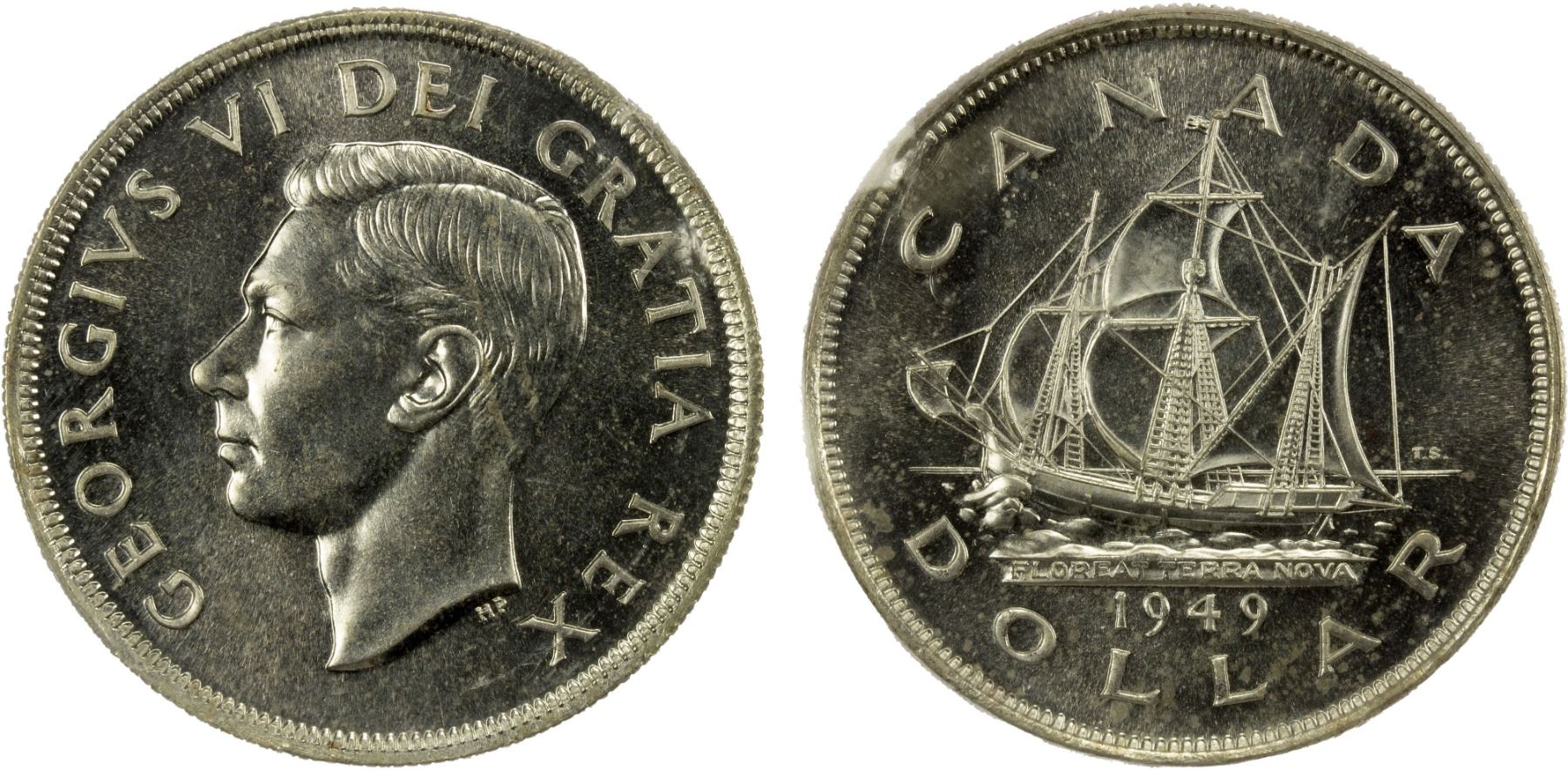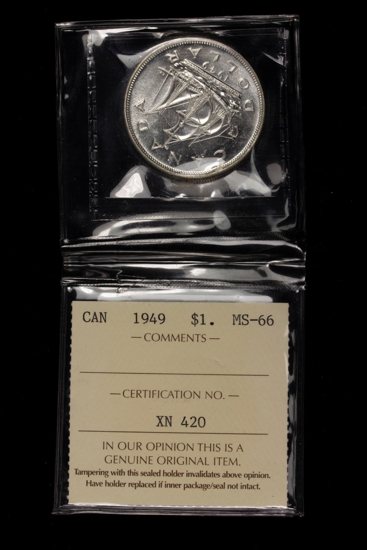 CANADA: George VI, 1936-1952, AR dollar, 1949, KM-47, Newfoundland commemorative, blast white luster, ICCS certified, a lovely example! MS66.