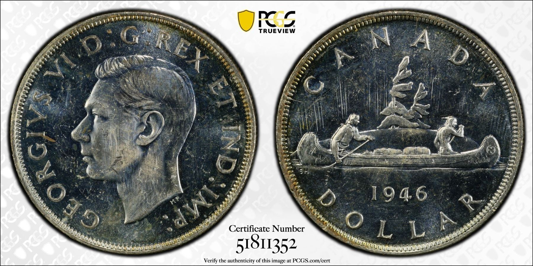 CANADA: George VI, 1937-1952, AR dollar, 1946, PCGS UNC details