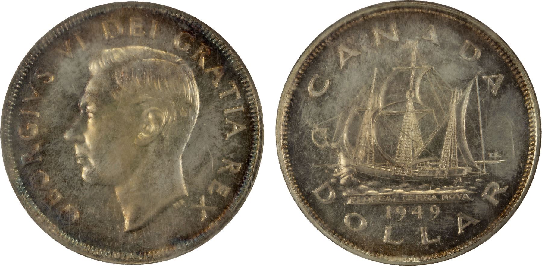CANADA: George VI, 1937-1952, AR dollar, 1949, NGC MS65