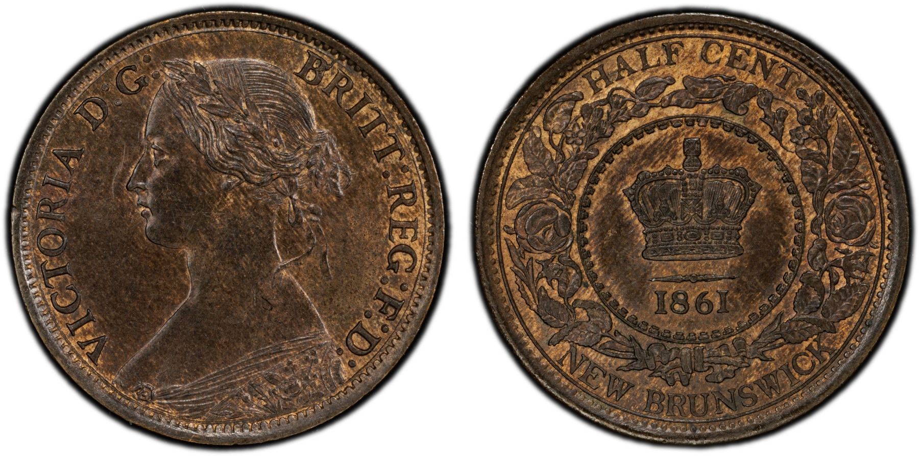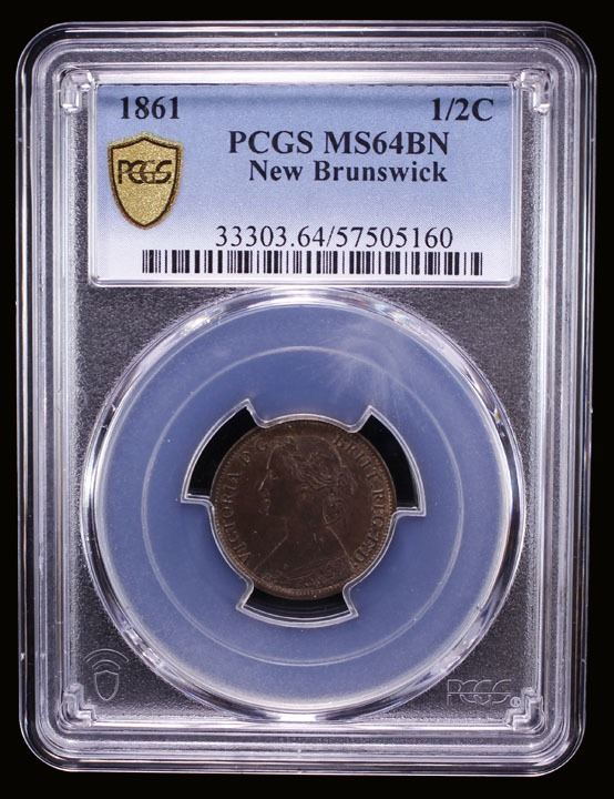CANADA: NEW BRUNSWICK: Victoria, 1837-1867, AE 1/2 cent, 1861, PCGS MS64 BN