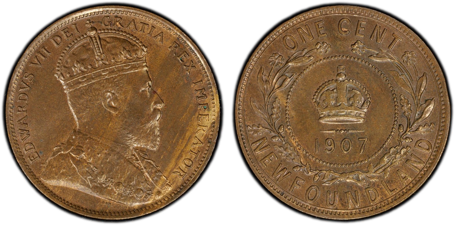 CANADA: NEWFOUNDLAND: Edward VII, 1901-1910, AE cent, 1907, PCGS MS63 BN